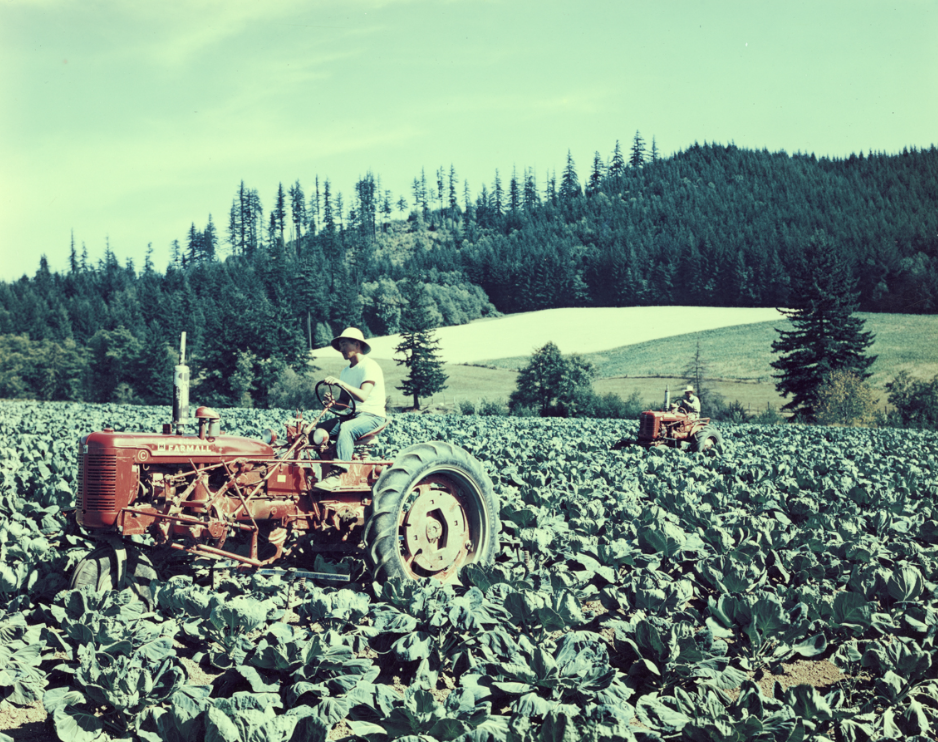 Like much of East Multnomah County, parts of Gresham were home to Japanese farmers. Brothers Joe and Henry Kato, pictured here, are farming their cabbage field just off SE 190th Avenue and Richey Road.